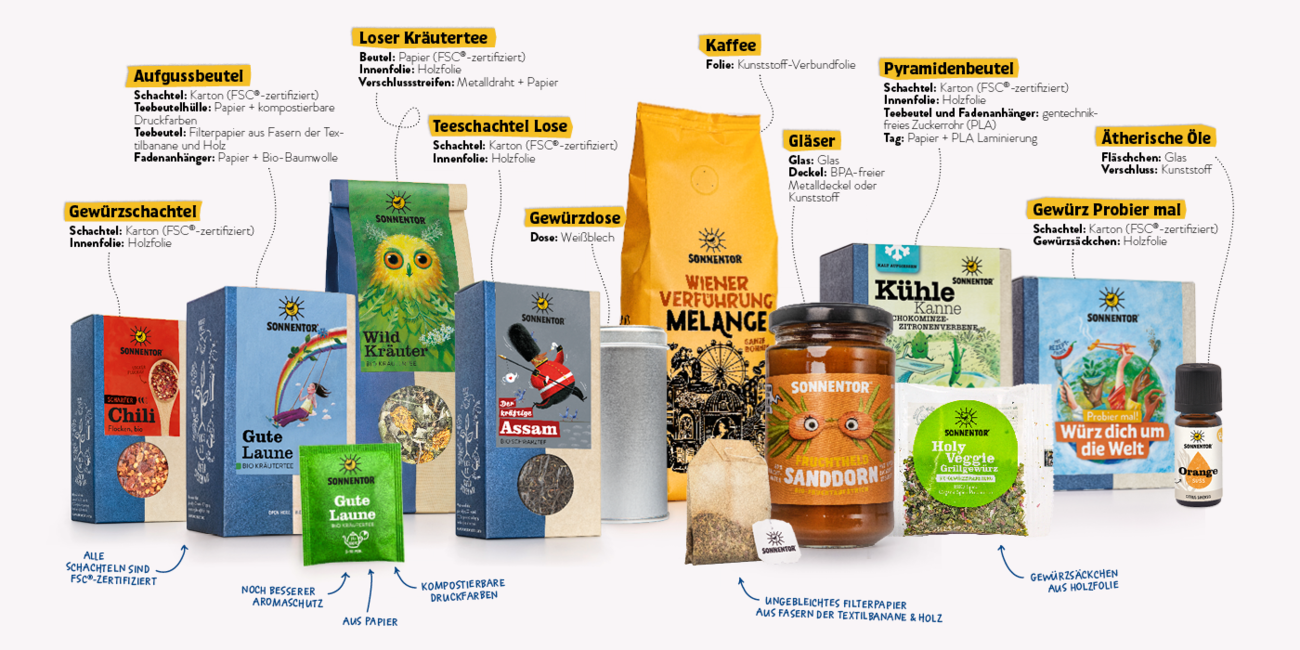 Sonnentor ist ein österreichisches Unternehmen, das biologische Tees, Gewürze, Kräuter, Süßigkeiten, Sirupe und Shots, sowie kleine Geschenke verkauft.